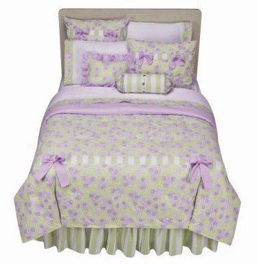 [***INCLUDED IN THIS SET: (1)Flower Basket Comforter Set in Lilac / Green] Size: Twin Features: -Soft comforter in lilac and green roses print with lilac ruffled edge.-4-piece matching bumper guard with yarn dyed ties.-Lilac and green roses print with lilac chorded edge.-Crib sheet is soft, fitted sheet in lilac.-Window valance in soft green vertical stripes.-One features the lilac and green roses pattern and the other is plain green.-Soft plush velour blanket features lilac on one side and soft green on the other with a decorative edge.-Hamper features a soft green striped body and a lilac and green roses patterned flap.-Cover features soft green striped top and lilac and green roses patterned sides with lilac chording.-Lilac and green roses pattern with lilac ruffle trim.-Removable cover for easy care.-Matching fitted bumper guard, comforter, removable fitted sheet, and standard mattress.-Toddler quilt is lilac and green roses patterned fabric and lilac ruffled edges.-Pink and green roses pattern with lilac ruffle trim.-Embroidered with frills on the edge.-Stripes in white / lilac with green border.-With 3'' rod pocket and customize the length by cutting with scissors.-Traditional style.-Embellished with tufted buttons.-100pct cotton.-Machine washable. Includes: -Set includes optional comforter set, toddler bedding set, sheet set, diaper stacker, decorative pillows, valance, moses baskets, rug, blanket, canopy, panel, hamper, bed skirt, changing pad cover and neckroll pillow.-Comfoter set available in Twin or Full/Queen sizes and includes one comforter and 2 pillow shams with bows (One Sham per Twin Set).-4-piece toddler bedding set includes: reversible toddler quilt, fitted sheet, flat sheet and pillow case.-Sheet set includes one flat sheet, one fitted sheet and 2 pillowcases (One pillowcase per Twin Set). Color/Finish: -Ties, featuring lilac and green roses pattern and vertical lilac ruffle accents.-22'' cane ring with 96'' netting drop with decorative accents