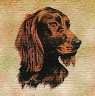 This creative canine image was created by Robert May, one of the world's leading canine artists. The image of the dogs head is depicted on a beige background in a lively pose. Robert prides himself on creating lifelike paintings of his subjects.
