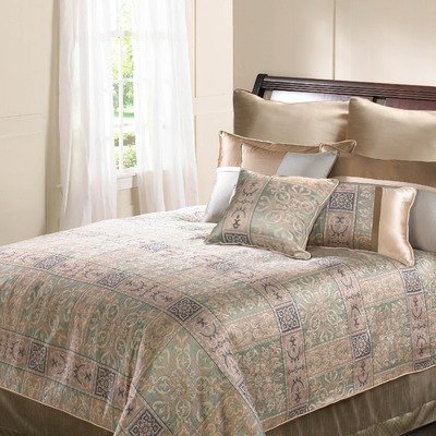 49065 Size: Queen Features: -Queen set includes Queen comforter, two Queen shams, Queen skirt, two Euro shams, two filled pillows, filled bolster. -King set includes King comforter, two King shams, King skirt, three Euro shams, two filled pillows, filled bolster. -Material: Polyester. -Dry clean only. -Dimensions: 96" Width x 92" Depth.