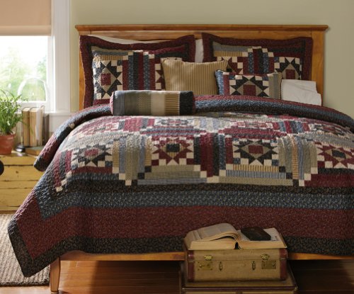 I love the quilt and shams that I ordered -- the colors are true to the online image, and I love the pattern. The quilt and shams are partially pieced together, but essentially it is a cheater quilt and is machine quilted together. But overall, the look and effect of it is what I was going for and I am completely pleased with the purchase. The queen quilt and shams (purchased seperately) were sized correctly (sometimes quilts can run small and you have to order a size up). Packaged appropriately and shipped immediately, no problems with the transaction.