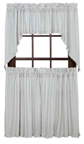 Country-fresh cremes get a patchwork update in Hudson's windowpane pattern. Pinstripe fabric of blue, chocolate, and toasted wheat in an on-point grid against a delicate crème background. Quilted items are hand-quilted with a matching pinstripe binding, and reverse to solid creme. Available in quilts, bedding accessories, window treatments and kitchen coordinates.