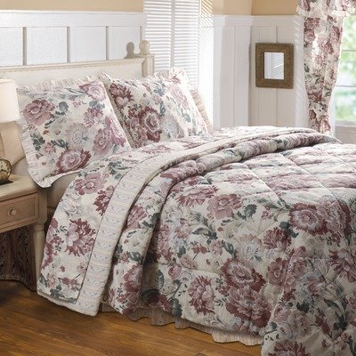 GL-1003AF Size: Full Features: -Material: 100pct Cotton.-Floral design with pin-stripe.-Comforter fill material: 100pct polyester.-Machine washable. Includes: -Set includes one comforter, two pillow shams (one with Twin), one bed skirt, and five piece window set. Options: -Available in Twin, Full, Queen or King size. Dimensions: -Bed skirt has a 15'' drop.